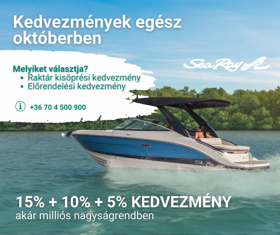 Érd.: Sea Ray Magyarország, 1191 Budapest Üllői út 190. Tel: 06/70/ 4-500-900, 06/70/ 4-500-930, office@searayboat.hu, www.searayboat.hu. Nettó kedvezményes ár: 25.327.238.-Ft