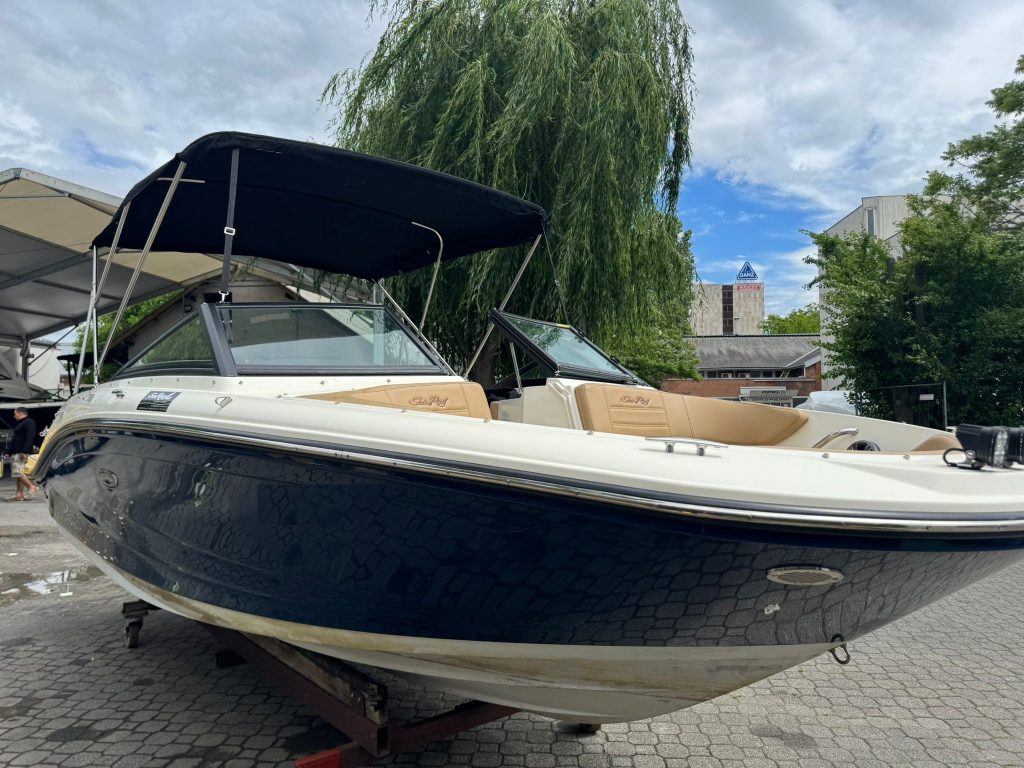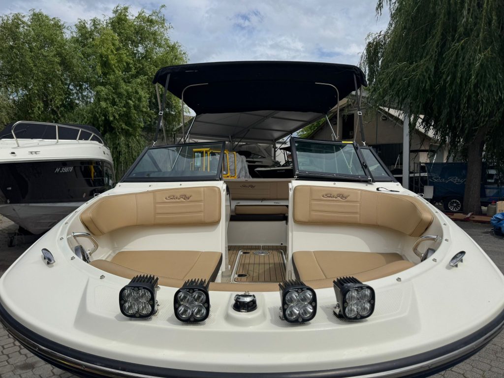 Sea Ray 190SPX 19,6 láb hosszú, keveset használt, 2020-as, jó állapotú, 105 üzemórával, éjszakai hajózásra felszerelt reflektorokkal, belmotoros motorcsónak Sea Ray gyári képviselettől, Mercruiser 200 M MPI/A1 ECT 4,5 L motorral, bruttó 18.990.000.-Ft akciós áron eladó utánfutóval. Az utánfutó Áfa visszaigényléses.