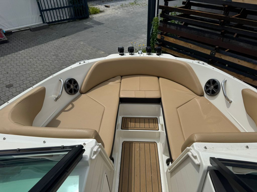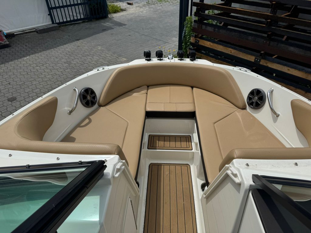 Extra felszereltségek: Sötétkék hajótest, éjszakai hajózásra alkalmas 4 db Baja Pro Series Squadron 4×1000 Lumenes orr reflektor, Kapitány csomag, Sea Deck barna fürdőplatform borítás, Bimini tető tokkal, orrkitöltő párna háttámlával, orr és fedélzeti takaróponyva, fedélzeti asztal teak, átjárható hátsó napozó, LED világítás.