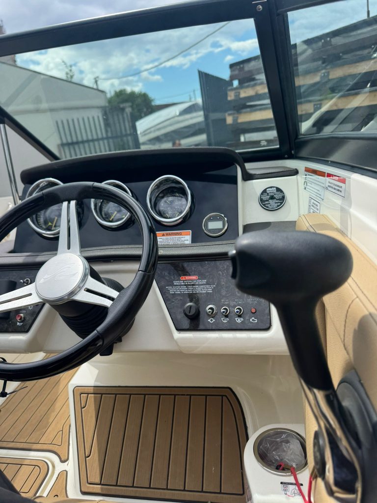 Alapfelszereltség: sportülés elrendezés, hátsó napozóval, szervokormány, teljes műszerzetség, navigációs fények, wakeboard tároló rekesz, dupla fenékvíz szivattyú, vízisí húzószem, Sony 4 hangszórós hifi, integrált fürdőplatform létrával.