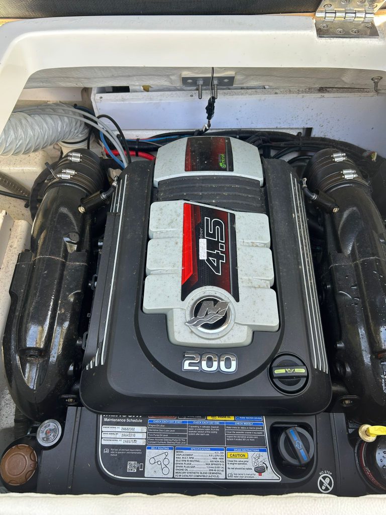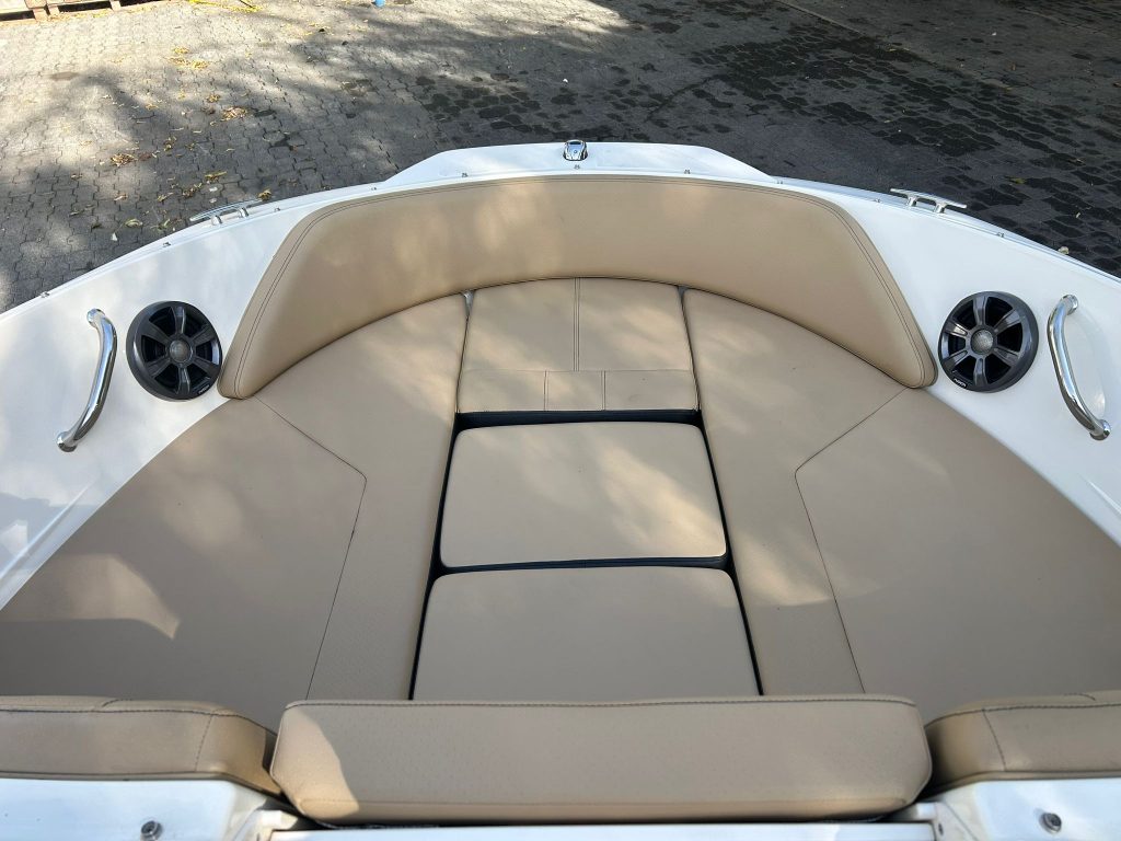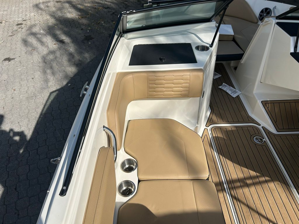 Extra felszereltségek: Kék hajótest, Kapitány csomag, Sea Deck barna fürdőplatform borítás, Bimini tető tokkal, orrkitöltő párna háttámlával, orr és fedélzeti takaróponyva, fedélzeti asztal teak, átjárható hátsó napozó.
